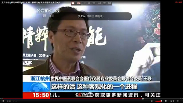 2015全國藥店年度峰會上我公司王總接受中央電視臺采訪,就目前中醫(yī)診療設備及中草藥現(xiàn)代化進程發(fā)表自己的見解。