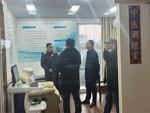 隨后章主任一行來到我司中醫(yī)調(diào)理室,并饒有興致的聽取工作人員介紹中醫(yī)調(diào)理室的成立背景、各模塊組成及工作原理、項(xiàng)目實(shí)施及落地情況,在工作人員演示完中醫(yī)音樂調(diào)理系統(tǒng)之后,對(duì)公司將中醫(yī)理論與人工智能融合表示高度贊賞,并鼓勵(lì)企業(yè)加大宣傳推廣力度。